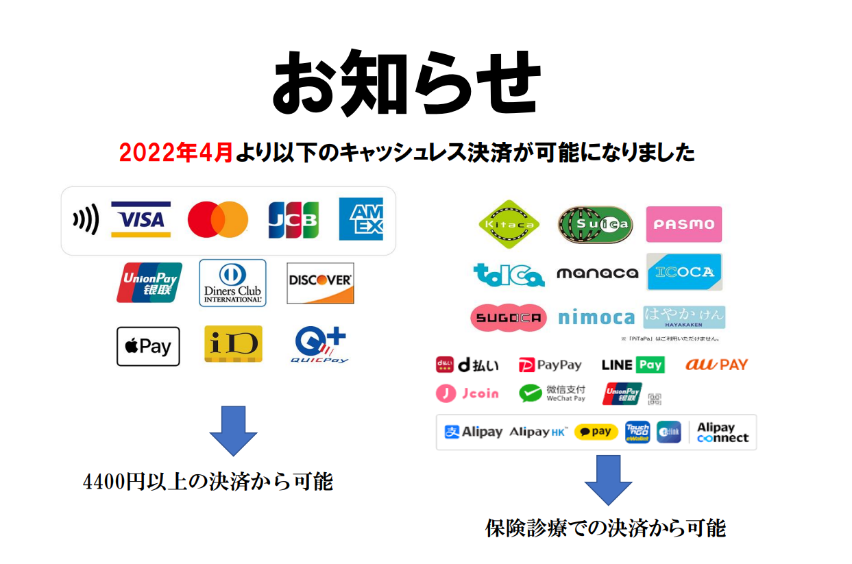 令和4年4月よりキャッシュレス決済の導入を致します。